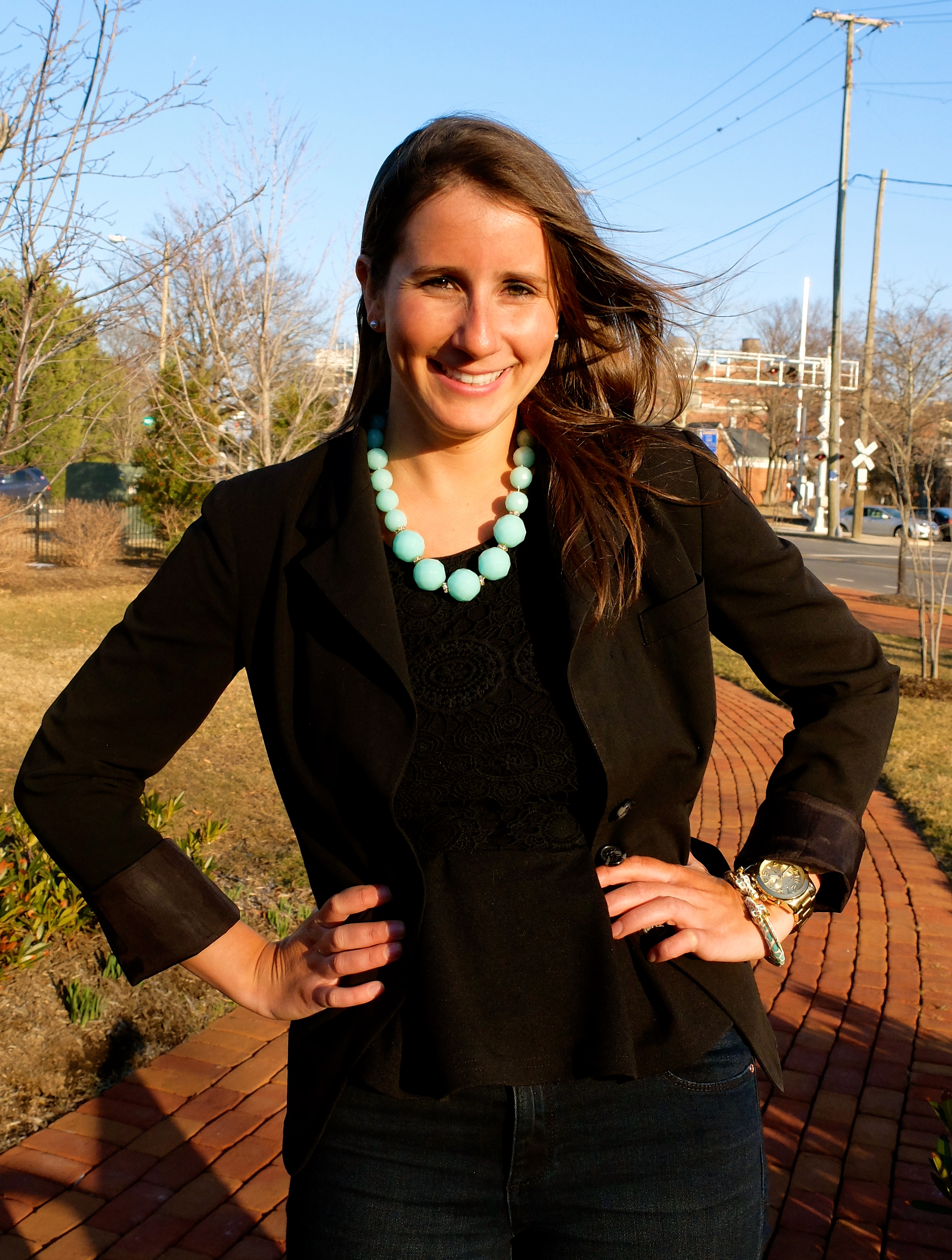 I love accessories; I really think they can dress up any outfit. Fun earrings or an interesting ring, a big necklace– accent pieces that can make an outfit more interesting and unique.